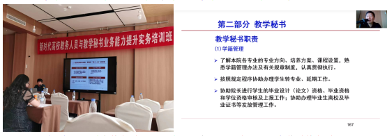 张昌凡教授以《教学管理技能研讨》为题,结合新时代高等教育面临新形势的背景,介绍了高校教学管理的基本内容,对二级学院的教学管理结合案例解说分析。