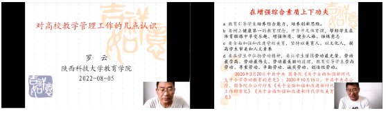 罗云副院长以《对高校教学管理工作的几点认识》为题,从高等学校教学管理的涵义、目标、主体、内容、方法,高校教学管理人员应该具备的素质等几个方面,详细阐述了关于高等学校教学管理的思考。
