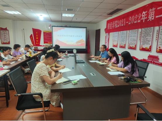 为向新入职的青年教师传达教师行业的基本素质规范,帮助其尽早适应全新的教学职业生涯,7月25日,财经学院在综合楼807会议室召开了青年教师入职培训会议。院长揭志锋、教务科全员以及全体新入职的青年教师参会,副院长匡文婷主持会议。