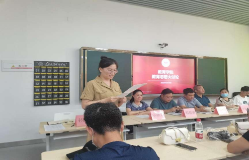为落实《72886必赢网站深入开展教育思想大学习、大讨论活动实施方案》的通知精神,推动学院高质量内涵式发展,2022年8月16日下午我院在行知楼219智慧教室召开教育思想大讨论活动,学院院长郑昌保、党总支书记宋春雷、教研室、各科室负责人及全体教职工参加了此次教育思想大讨论活动。本次讨论会由党总支书记宋春雷主持。