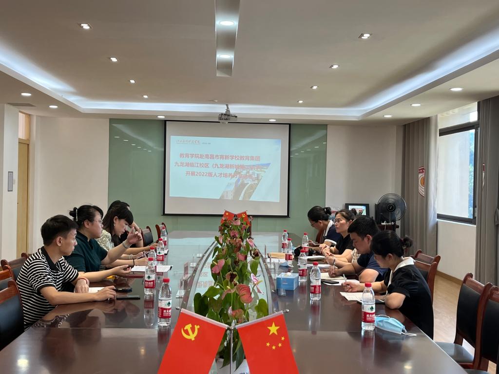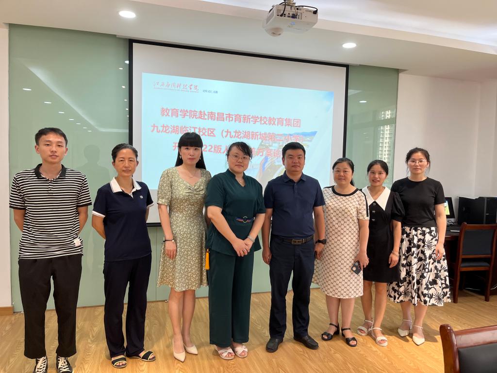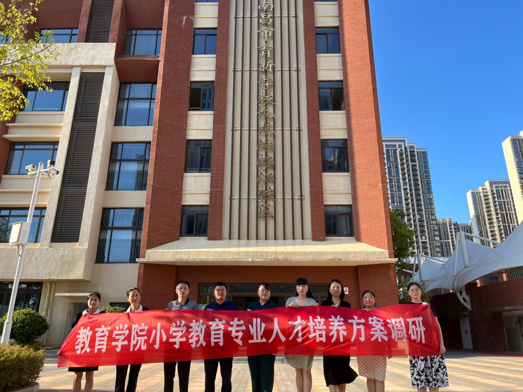 2022年8月19日,教育学院院长郑昌保,小学教育教研室主任路萍,骨干教师罗曼丽、徐园等一行6人赴南昌市育新学校教育集团九龙湖临江校区(九龙新城第二小学)就小学教育专业人才培养方案修订、小学教育专业本科生实习实训等相关问题进行调研论证。南昌市育新学校教育集团九龙湖临江校区(九龙新城第二小学)执行校长黄菁婧,教务副校长曾福红,教务老师胡方枭,政教老师李欢欢参加调研论证座谈会。