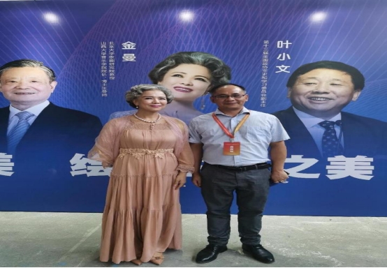 现代管理学院院长谢远健在参会期间和艺术与健康管理专业委员会主任委员金曼合影留念