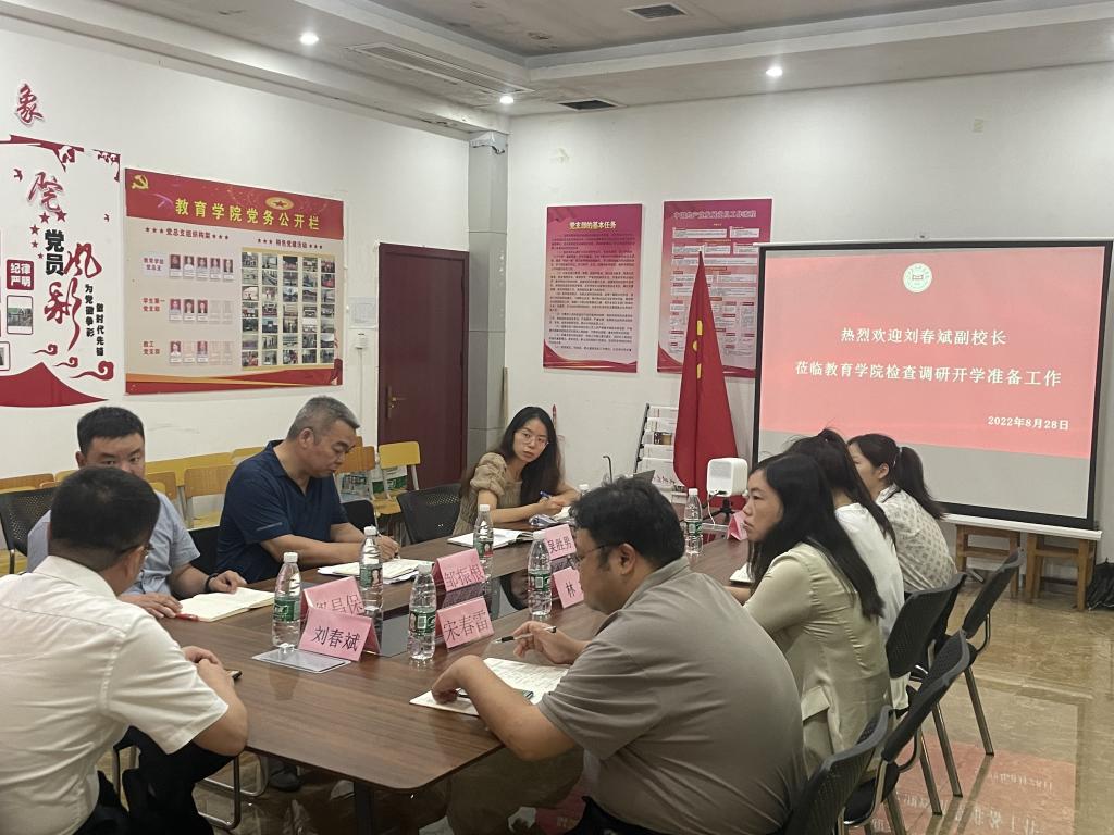 调研座谈会上,学院党政负责人对教职工到岗、学生返校、教学准备、新学期工作思路及本科教学合格评估工作等做出汇报,同时提出了当前学院发展存在的问题及需学校支持和解决的事项,刘春斌副校长对学院提出的问题进行了解答,并对学院新学期的工作提出了要求。第一,注重教学秩序。作为教育学院,更要抓住教学这个中心,按照本科教学合格评估的各项标准要求规范学院教学,进一步提高学院教育教学质量;第二,学生管理方面,校园安全稳定特别是意识形态方面是底线,学院要始终绷紧这根线,发挥全院资源形成合力参与到学生管理中去;第三,加强教师培养培训工作,要主动关心学院教师成长的迫切意愿和强烈诉求,支持、帮助、鼓励教师成长发展,进一步增强学院教师归属感和使命感,激发青年教师工作热情和发展动力。