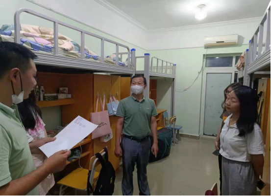 9月5日晚,在现代管理学院迎新工作的同时,为了加强与新生的沟通,了解我院2022级新生的总体情况,引领新生更好地适应大学生活,学校校长助理兼现代管理学院党总支书记章斌、学工科科长苏秋月及辅导员教师走访了新生宿舍,了解新生的入学状态与现目前的所需所求,带去学院的关心与关爱。