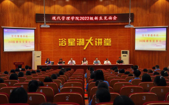 “十年寒窗终不负,一生韶华亦可期”,又是一年开学季,现代管理学院又一次迎来了一批新鲜血液,历经了高考的磨练,新生对即将到来的大学生活充满着向往与热情。为了让2022级新生尽快熟悉校园坏境,适应大学生活,融入现代管理学院大家庭,2022年9月7号9点,我院在浴星湖大讲堂举行2022级新生见面会,通过线上线下相结合进行召开。
