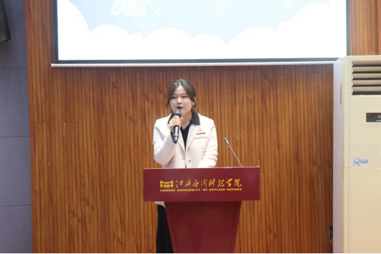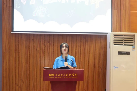 2020级老生代表张雨欣同学结合两年大学的经历,与大家分享了几点心得体会,生活将是我们生命中最崭新、最能展现自我个性的几年,在逆境中不放弃,饱含热泪地去力争上游。在顺境中不傲气,秉持信念继续前行,希君生羽翼,一化北溟鱼,扶摇直上九万里!我相信,每一名学子在离开学校这一无私养育我们的热土时,回眸这难忘岁月,都能够问心无愧的说:追求卓越,青春无悔!