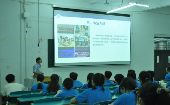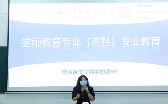 两位老师分别从学校与学前教育专业发展的历史背景开始讲起,给2022级学前教育专业新生详细介绍了学院学前教育专业培养目标与课程设置、师资力量与教学条件、师生活动与教学质量、学习准备以及就业前景等方面内容,并鼓励同学们要珍惜光阴,努力学好专业知识,勤练专业技能,知行合一,期待每位学生在学前教育知识与技能的各项大赛中绽放自己的光彩。