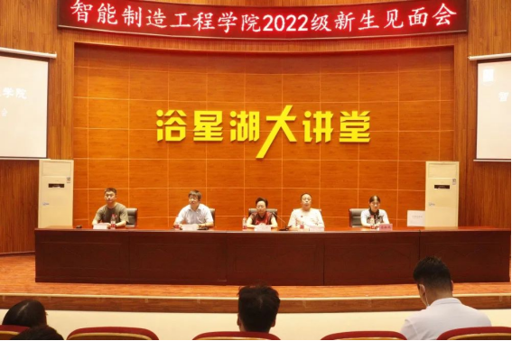 天青色等烟雨,智造终于等到你。经过漫长的等待,终于迎来了我们和智造新成员的相见时刻,为了让新同学们尽快融入学校这个大家庭,适应新的环境,幸福地生活,努力的学习。2022年9月7日,智能制造工程学院在浴星湖大讲堂开展了2022级新生见面会。出席本次会议的有智能制造工程学院院长陈杨华、党总支书记高原、智能制造工程学院副院长王宙、办公室主任梁楸鸿、学工科科长席金号、全体专职辅导员和2022级新生们。