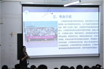 为了让2022级小学教育专业的新生更好地适应大学生活,了解专业发展方向,明确学习目标,学院小学教育教研室于9月20日晚上7点在三达楼J3教室举行了2022级新生专业教育活动。小学教育专业教研室青年骨干教师王思琪主讲,教研室副主任罗曼丽参加活动。