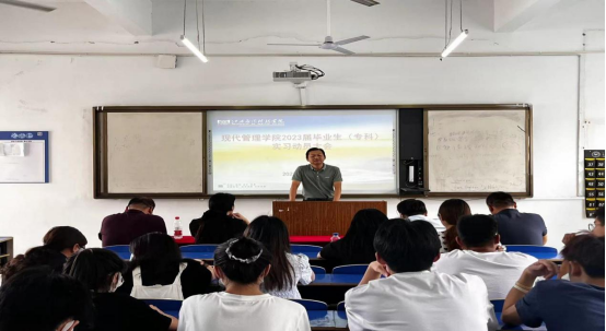 最后实习企业单位联络人,分班级为2023届现代管理学院毕业生进行了宣讲、答疑。