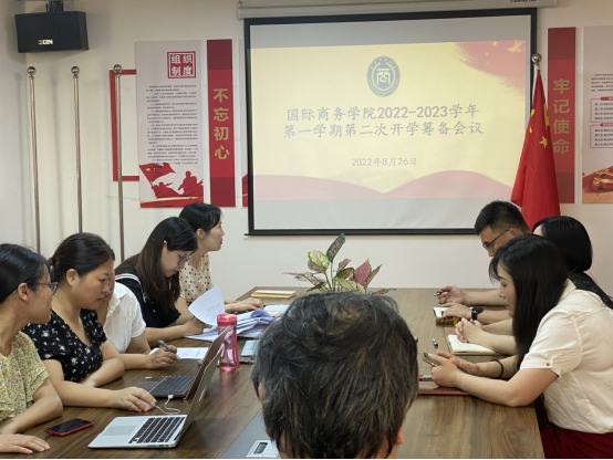 8月26日上午,国际商务学院在综合大楼404召开2022—2023学年第一学期第二次开学筹备会议。校党委委员副校长胥懋云、国际商务学院院长王慧、党总支书记徐青出席会议,国际商务学院全体教师参加此次会议,会议由徐青主持。