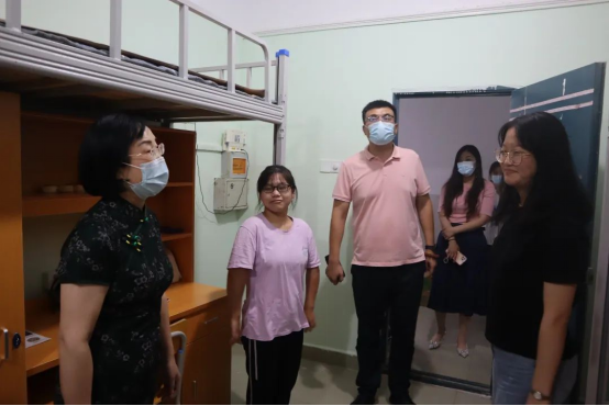 金秋九月,国际商务学院迎来了2022级的新同学们。为让新生尽快适应新的生活新的环境,9月6日晚上,校党委委员、副校长胥懋云、学院院长王慧、党总支书记徐青带领全体专兼职辅导员老师深入学生公寓,看望慰问新生,与同学们亲切交流,关怀新生在校生活!