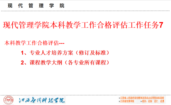 随后对各个教研室下发了具体的教学任务,对于每个本科课程都要在校专业人才培养方案的基础上,写出一份更符合各科学情的人才培养方案以及对应的教学大纲,教研室主任负责该部分,教研室副主任主要负责各自教研室的实训室建设。同时各科老师和各部门积极配合此次本科教学工作。