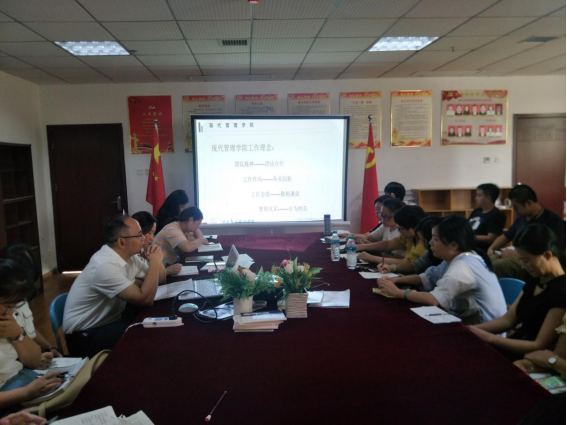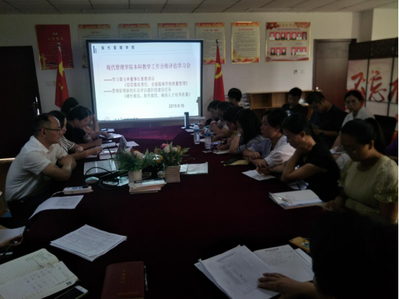 2019年9月17日下午,现代管理学院在综合大楼908党员活动室召开本科教学工作合格评估学习系列会议——学习黄玉林董事长重要讲话,分院全体教职工参加了此次会议,会议由分院院长谢远健主持。