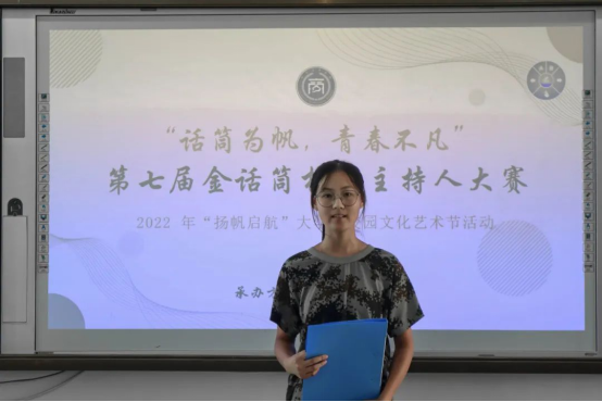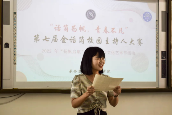 为深入学习习近平总书记在庆祝中国共产主义青年团成立100周年大会上的重要讲话精神,营造积极向上的校园文化氛围,加强校园精神文明建设,培养学生的语言表达能力和交际反应能力,为在主持方面有才能的同学提供锻炼自我、展现自我的平台,展现当代大学生青春、热情、富有活力的青春风采,国际商务学院“话筒为帆,青春不凡”第七届金话筒校园主持人大赛院级复赛于2022年9月27日中午12点30分,在三达楼303教室正式举行。