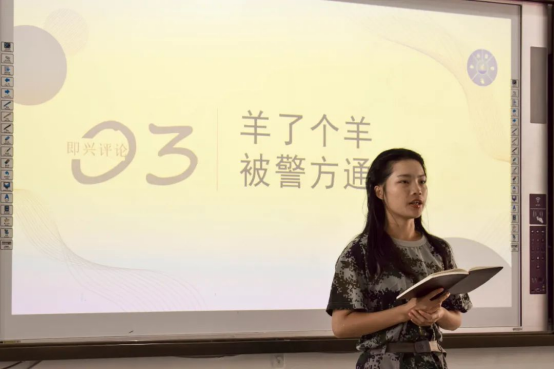 比赛的第二环节是“即兴评论”——选手根据抽到的社会热门话题或素材内容展开3分钟的即兴评论。选手们在收到各自的选题后有短暂的准备时间,而后对所得选题展开准确无误、逻辑严谨地进行精彩地评论。