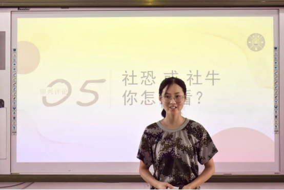比赛第二环节结束后,康思思老师对各位选手的表现进行了点评。她强调,主持人大赛比的是主持能力,选手们要注意读稿、念稿问题,做到全程脱稿。在即兴评论环节中,针对明星塌房等选题应分析出其内因和外因,避免评论时间过于简短。