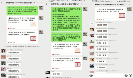 教育学院党总支组织了由十余名学生党员组成的5支专题宣讲队在晚自习期间深入各个班级展开《习近平谈治国理政》第四卷内容的宣讲活动。在宣讲过程中将这一著作的严整体系、丰富内涵和深邃思想呈现在学院师生面前,覆盖各年级18个班级800余人。