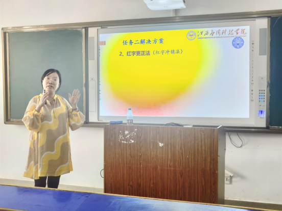 杨老师本次的授课内容为《会计学》课程中第八章会计账簿的错账更正内容。杨老师从两个阶段进行授课,第一阶段是课前探究,通过超星学习通平台发布课前任务,并创设情境,将课程更生动形象地展现在学生面前。学生在线下完成教师布置的各项任务,通过合作探究、自主学习,能有效的提高学生学习积极性。第二阶段是任务驱动式新课讲解,使抽象的知识尽可能通俗易懂,让学生进一步加深理解错账更正的流程、错账产生的原因、更正错账的三种方法。