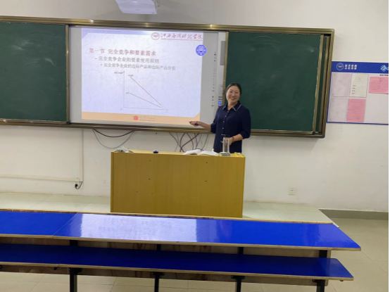 黄小丽老师从微观经济的循环流转图导入第六章生产要素市场和收入分配内容,逻辑非常清晰。在讲解完全竞争企业的要素使用原则部分先让学生讨论“明星的高收入合理吗”,引导学生站在经济学的角度上分析现实问题;讲解完全竞争企业的要素需求曲线部分让学生动手画图,帮助学生理解记忆图线起止点和拐点的特性。在整个教授过程将经济学中比较抽象的公式以简洁的语言帮助学生理解,注重学生分析问题和解决问题的能力,建立经济学思维模式。