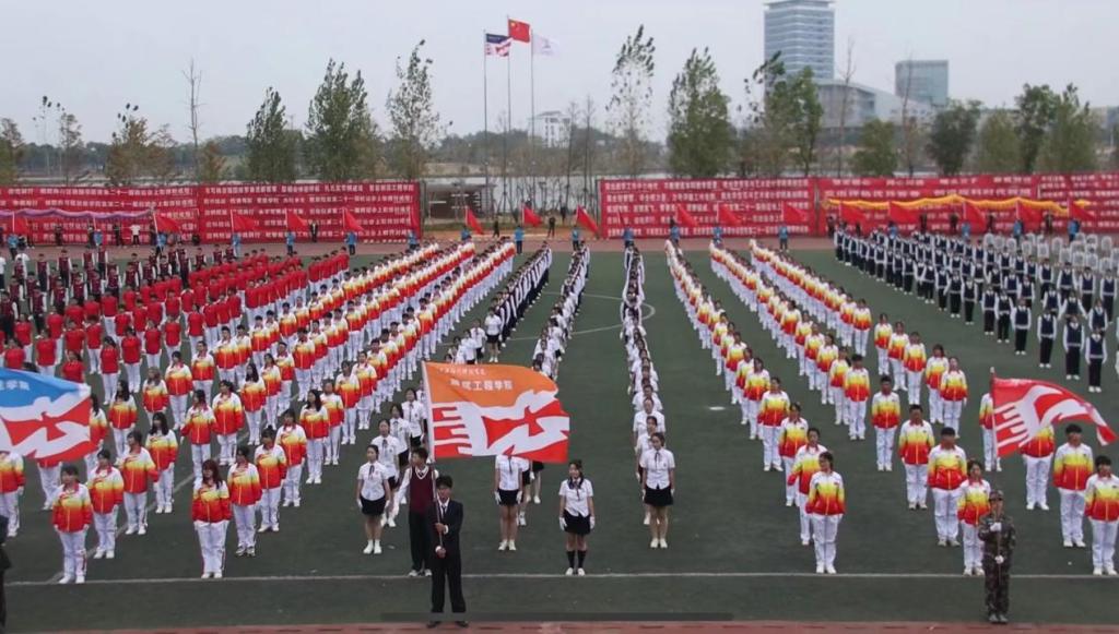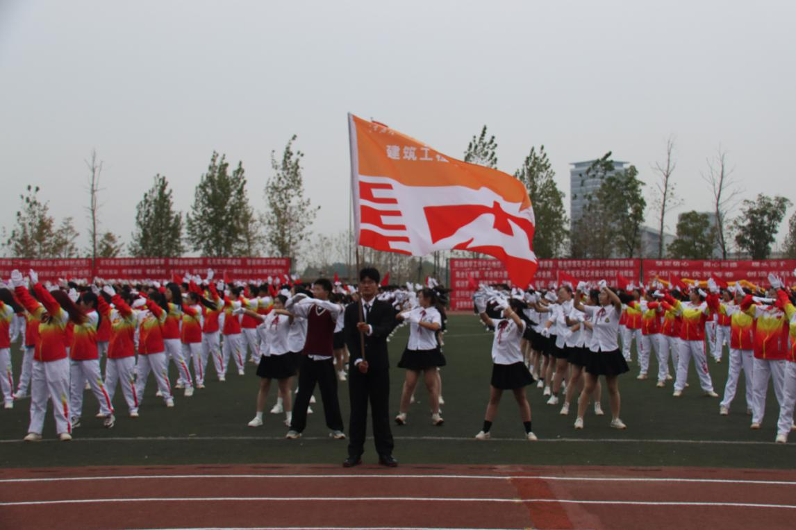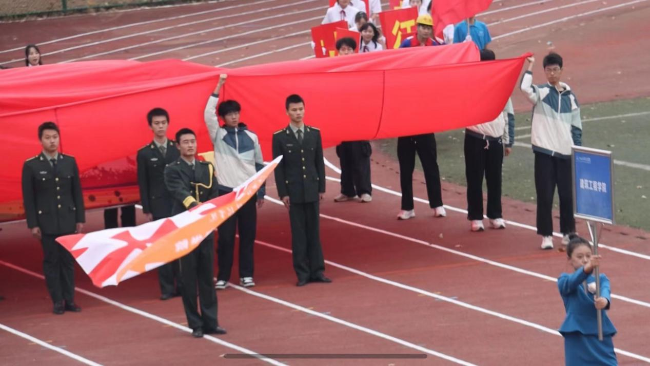 上午8点,运动会入场式正式开始,伴随着激昂的进行曲,建筑工程学院代表方队踏着整齐的步伐,昂首挺胸地走入会场,田径场彩旗飘扬,校运动会正式拉开帷幕。