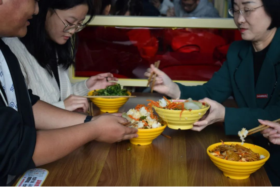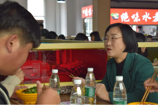 下课之后,胥校长和学生们一起徒步走进学生一食堂,和学生们一起共进午餐,边吃边聊。胥校长亲切地与学生们沟通交流,询问班级的具体情况,对学生们提出的问题进行了一一解答。当听到学生们反映学校的饭菜非常可口,胥校长非常高兴并表示要常怀一颗感恩之心,珍惜粮食,拒绝浪费,努力学习,为祖国谋发展,为学校增荣光。