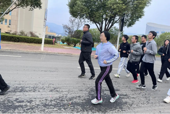 早上6点50分,胥校长首先整理好班级晨跑队伍,随后便用一句英文“Good morning”与22本商务英语4班的同学们展开亲切交谈。在交谈中,胥校长指出开展晨跑晨读等系列活动意义非凡,认为长期坚持下去对同学们的身体锻炼及专业知识学习有极大的帮助!所以希望同学们都能坚持下去,养成自律的好习惯。7点,随着一声开跑,胥校长带领着班级同学们一起开始了晨跑锻炼活动!