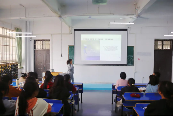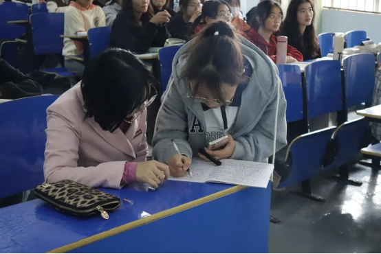 接着,胥校长坐下来听了一堂心理健康教育课。课堂上,同学们积极发言,认真做笔记。在认真听完一堂课之后,胥校长了解到该班级的上课情况,表扬了班级同学们积极认真的学习态度,对老师的上课水平也充分肯定。胥校长曾赴国外留学,英语专业知识深厚。在课后,胥校长也耐心热情为同学们解答英语方面的知识,同学们收获颇多。