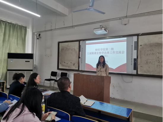 为进一步深化本科教育教学改革,强化教学工作中心地位,鼓励教师潜心教书育人,10月21日下午,财经学院在三达楼405教室召开第二轮大规模课堂教学改革工作交流会。院长揭志锋、副院长匡文婷、教务科科长李静、第二轮大规模课堂教学改革主讲教师及全体专职教师参会。