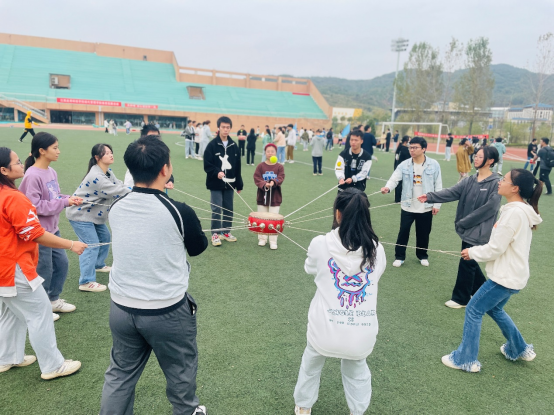 活动开始后,同学们依次开展“一锤定音”“运转乾坤”“鼓舞飞扬”“旋风跑”等游戏活动。带着新奇和热情,同学们积极参与并完成了每一项游戏,在游戏中拉近了彼此的距离,青春的力量在操场里尽情洋溢着。