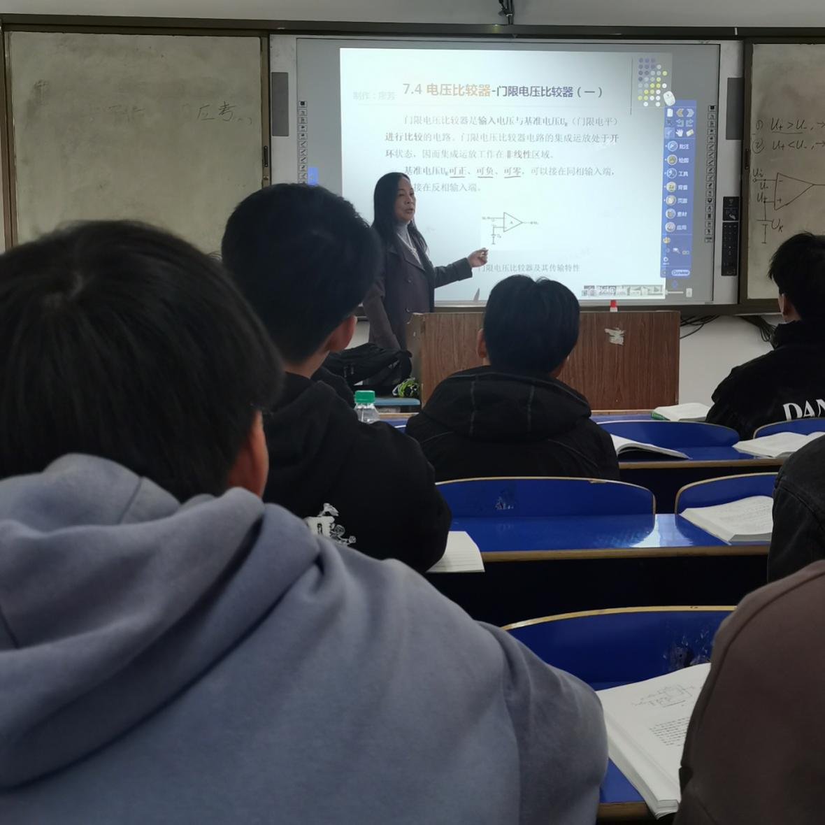 本次公开课由人工智能学院李俊院长带队、副院长刘晔、邓春华及没有教学任务的教师全程参与。公开教学的教师为-电子信息工程专业带头人廖芳教授,授课课程-模拟电子技术。