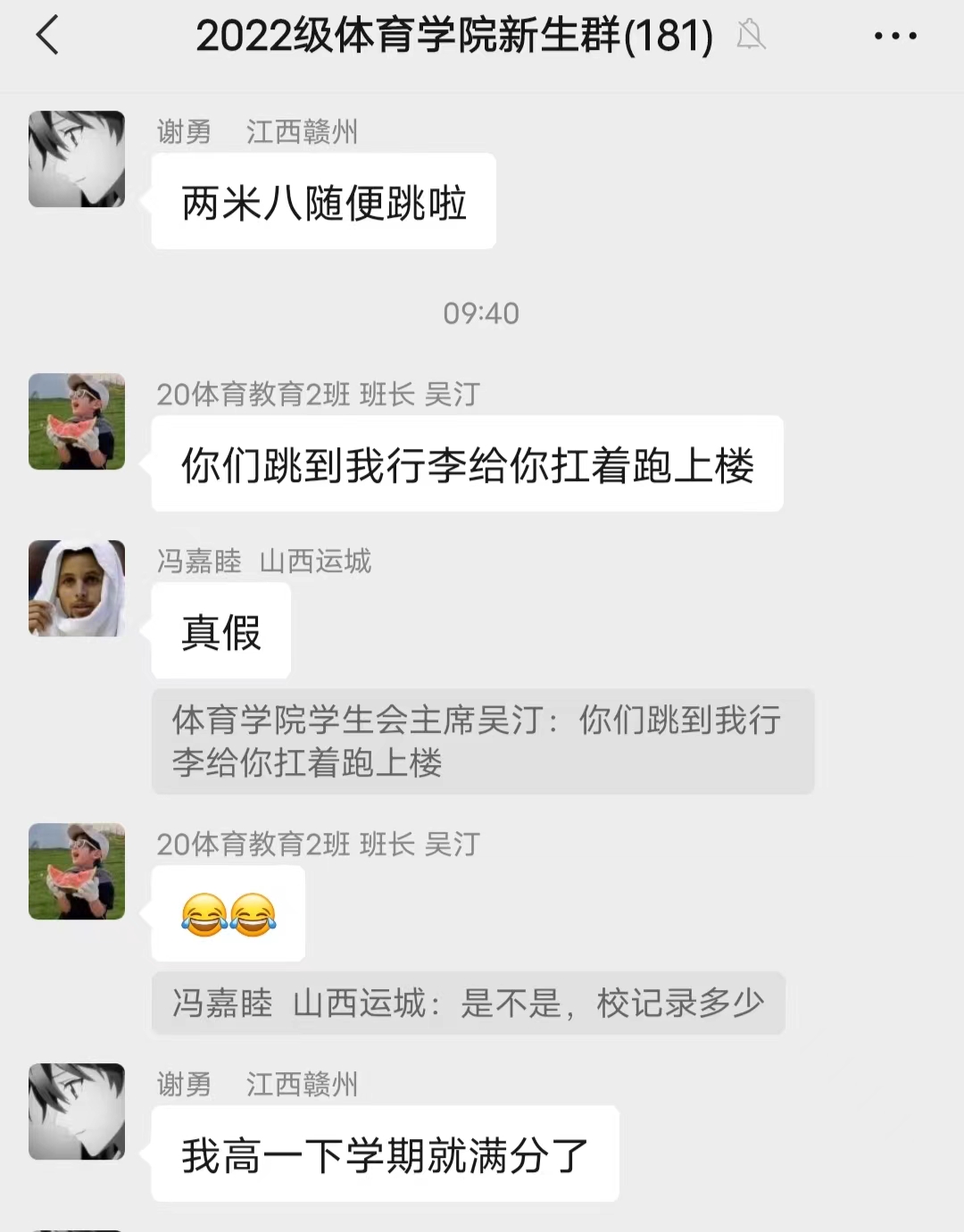 跳到两米八,行李学长给你搬到宿舍家