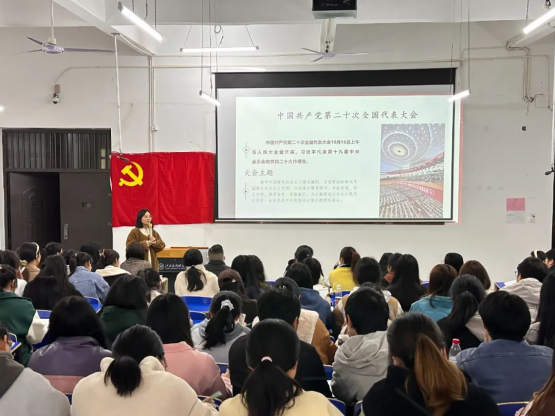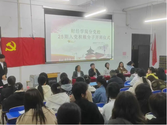 2022年11月17日18:40,财经学院分党校25期入党积极分子培训班开班仪式暨第一堂党课在三达楼阶梯一召开