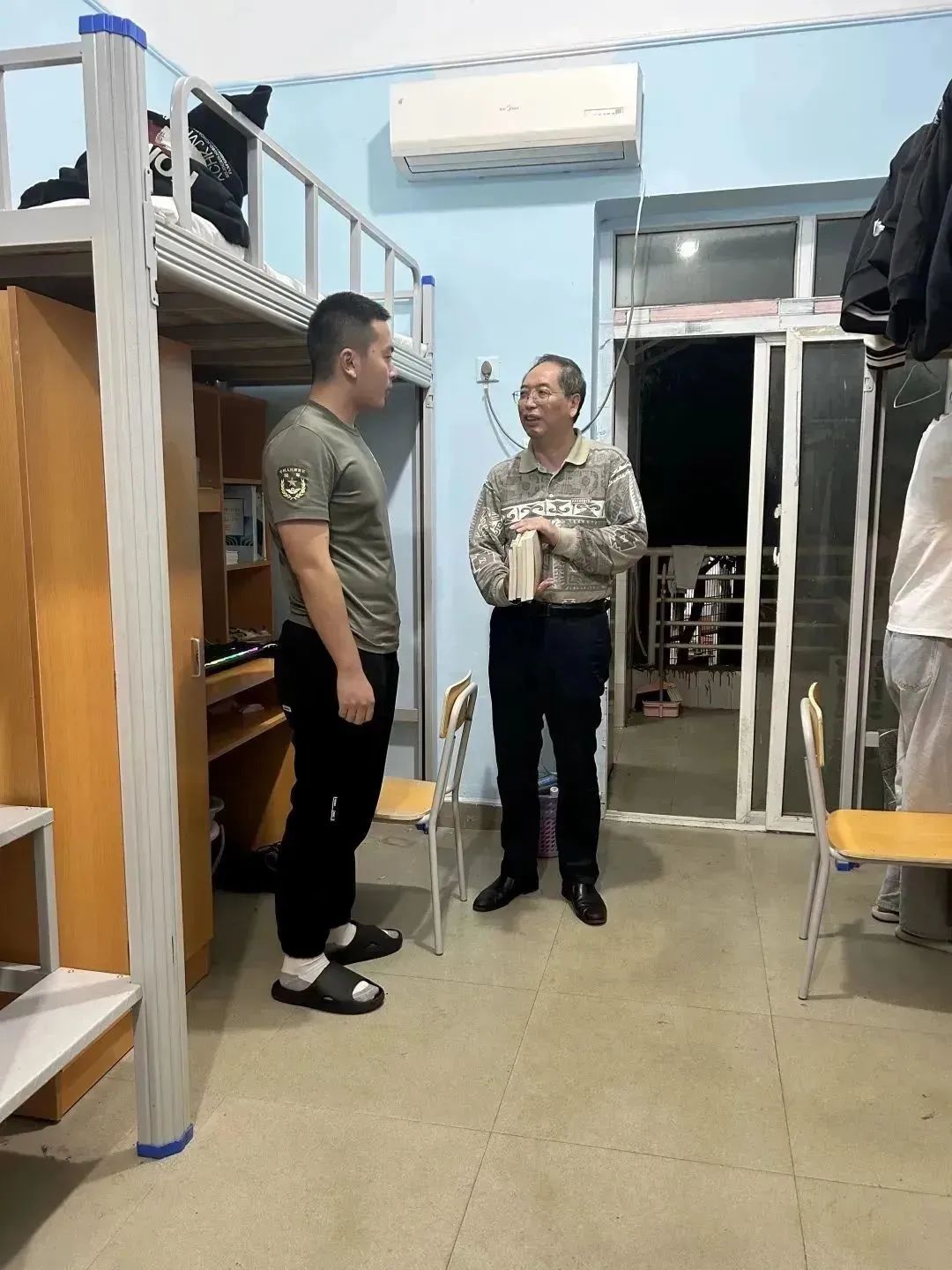 “感谢校长,欢迎校长再来。”晚自习结束不久,男寝传来一阵欢呼声和掌声,李建萍副校长在卢胜勇书记的陪同下深入男生宿舍查寝。查寝过程中,每走进一间寝室,李建萍副校长都会与学生亲切的交流,细致了解学生的学习、生活情况以及思想动态,认真倾听学生的心声。并叮嘱学生要把军训期间吃苦耐劳的精神,持之以恒的用到今后的学习和生活中去,争取在学习中勇创佳绩。