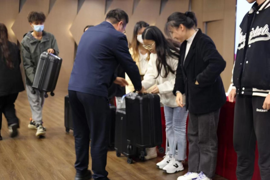 在会议的最后,由领导和老师们一同为考研学子们分发由董事会为大家准备的考研慰问大礼包。同学们笑容盎然、井然有序地接过老师们亲手赠送的大礼包,深切感受老师们亲切的加油鼓舞以及满满的期待和支持。