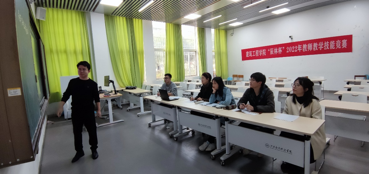 为不断提高我院广大一线教学教师的教学水平和执教能力,全面提高教师教育教学质量。根据《建筑工程学院“辰林杯”2022年教师教学技能竞赛方案》,水利水电工程教研室于11月22日下午14时30分在行知楼123教室开展“辰林杯”2022年教师教学技能竞赛初赛,全体教研室成员参加。学院领导莅临大赛现场观看指导。