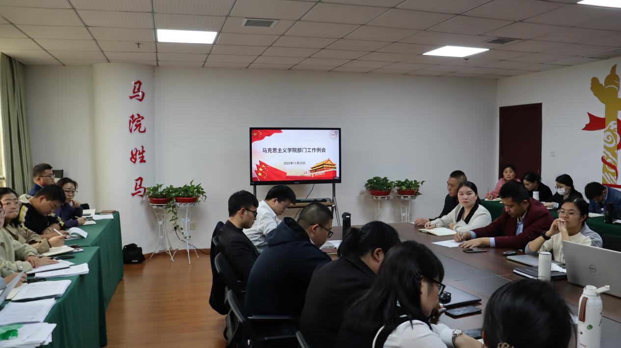 2022年11月25日下午14:30,马克思主义学院在综合楼808会议室召开了2022-2023学年第一学期第十次工作会议。会议由学院教学运行科科长占铃娜主持,全院教师参加。