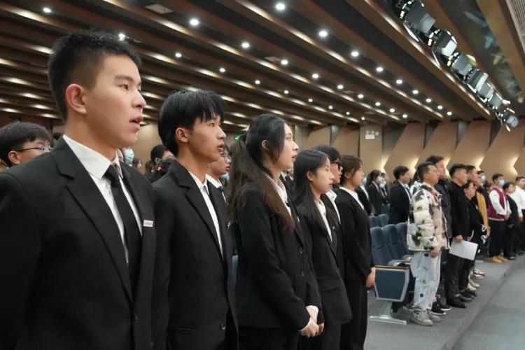 11月27日,学校2022年下半年新团员入团仪式在辰林音乐厅举行。团委书记张荆、各学院团总支书记、老生团员代表、全体新团员参与仪式。
