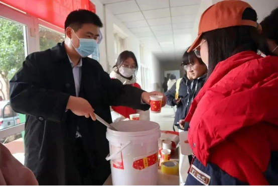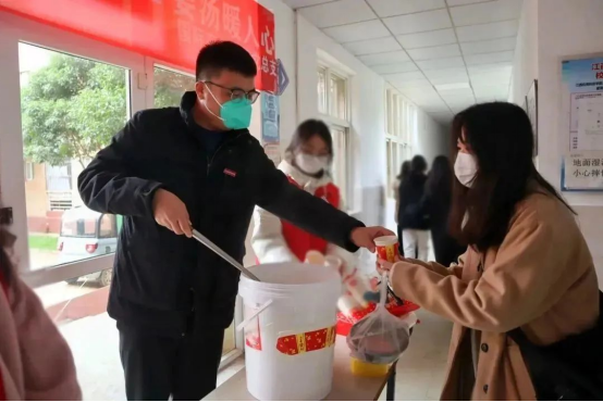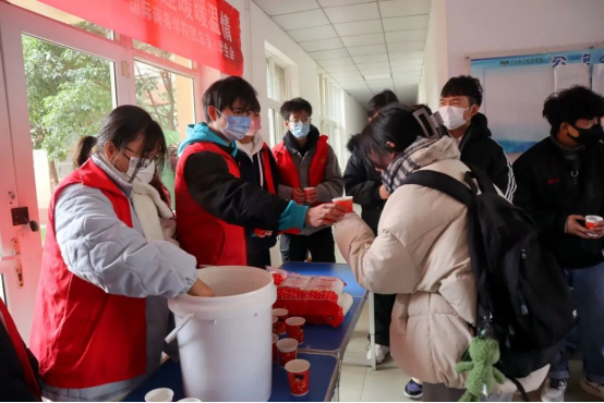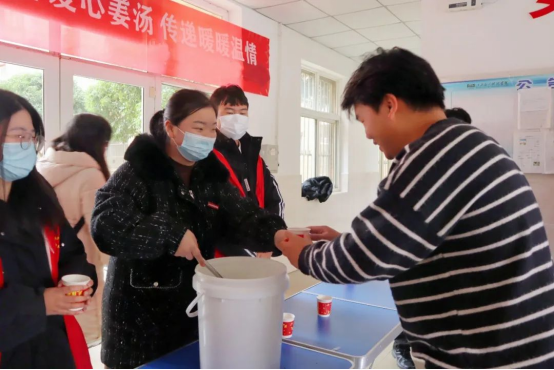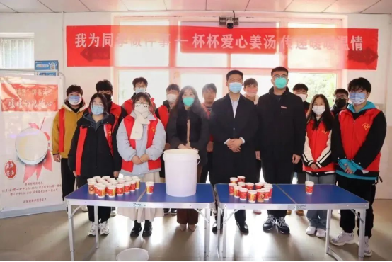 南昌入冬以来,气温骤降,天气变化多端,流感多发。为了增强学生抵抗力,帮助学生驱寒保暖,2022年12月5日,国际商务学院党总支组织开展“我为师生办实事——温暖伴师生,姜汤暖人心”姜汤发放活动。