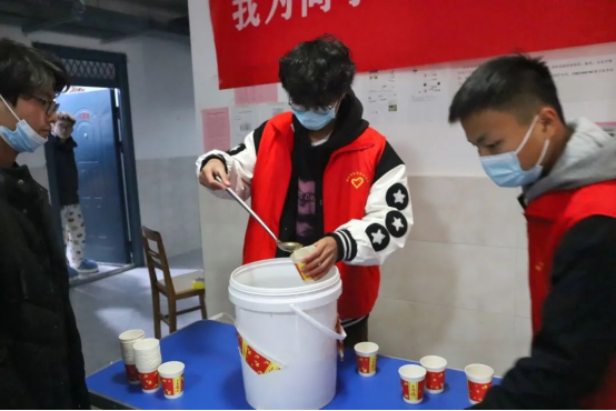 来到学生宿舍后,江星书记以及我院的领导老师们便亲自上手给国务学子们打姜汤,一个个温暖而又细致的举动,似一股暖流气息弥漫笼罩着整栋宿舍楼。