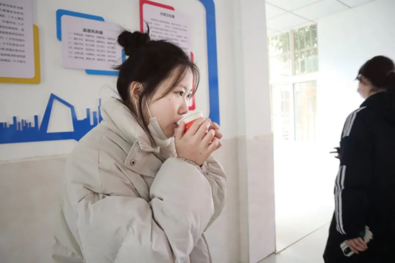 虽然室外寒风凛冽,但是暖暖的姜汤杯握在手心,温暖的姜汤流淌在内心,一个个前来领取姜汤的国务学子们脸上都洋溢着幸福的笑容。大家纷纷表示很感谢学院的温暖,关照以及细致的服务!