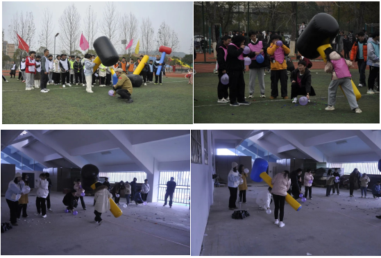 游戏由小组形式展开,先由小组老师进行团队展示,然后同学们依次开展活动。此次活动共有“一锤定音”、“毛毛虫”、“扭转乾坤”、“鼓击小球“等游戏项目,在轻松愉悦的氛围中,各组成员齐心协力,团结合作,努力争取每一次游戏的胜利。