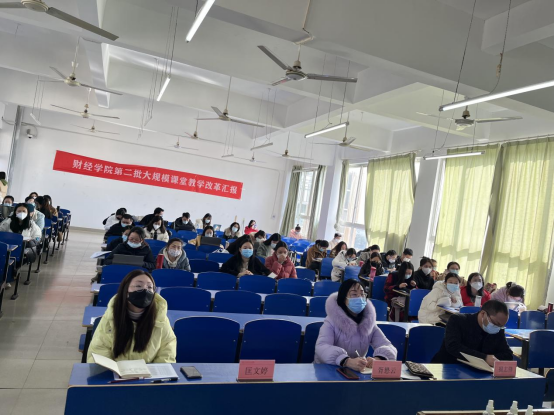 根据《关于大规模课堂教学改革课程专项工作汇报的通知》(应科院教发[2022]109号)文件要求,为深入推进课堂教学改革,提高人才培养质量,12月13日上午,财经学院在三达楼405开展“第二批大规模课堂教学改革汇报”活动。72886必赢网站党委委员、副校长胥懋云莅临现场指导,财经学院院长揭志锋、副院长匡文婷及全体专职教师参与活动。