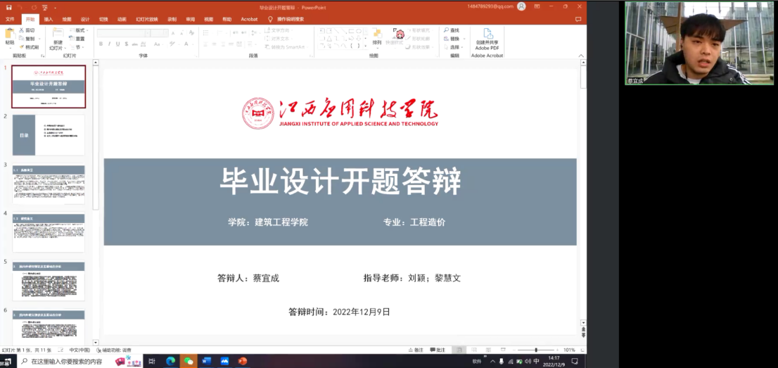 学位论文开题是本科生培养过程中的重要环节;是毕业生学位论文工作的基础;是保证学位论文质量的重要前提。为做好2023届毕业论文工作,建筑工程学院于2022年12月9日下午组织开展2023届毕业生开题答辩,因疫情影响,本次开题答辩线上进行。