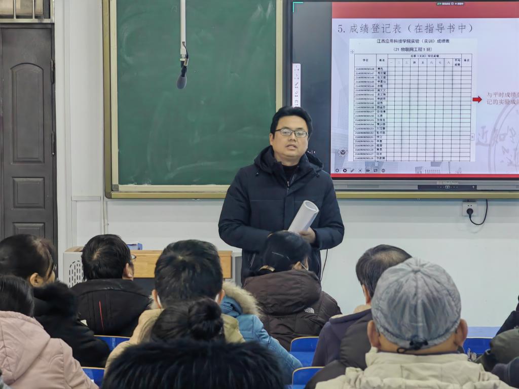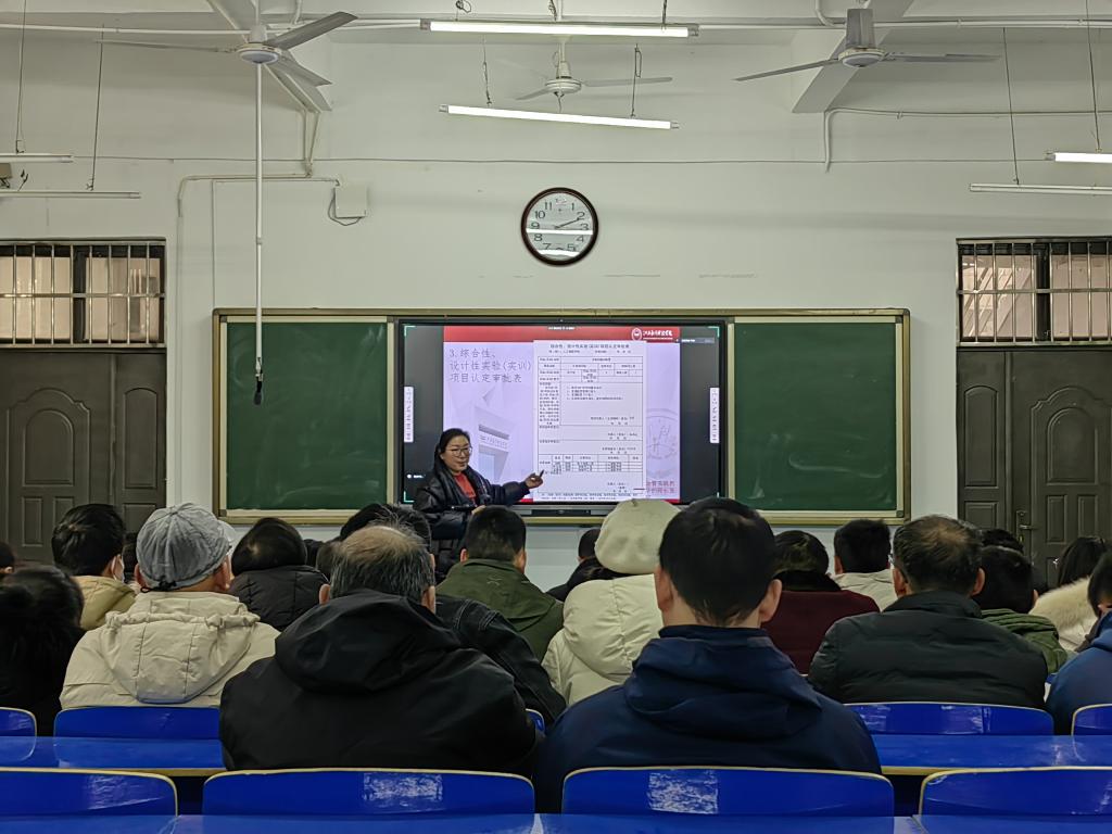 物联网工程教研室主任赵春美、电子信息工程教研室主任熊长智结合学校要求和自身教学经验分别讲解期末实践档案材料和期末教学档案材料归档要求,解答在场教师提出的问题。
