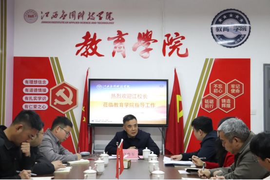 在听取汇报后,江作军校长对学院的教育教学及学生管理工作给予了充分肯定,同时指出教育学院作为教育类专业学院,2023年要紧紧围绕学校本科教学工作合格评估,始终保持专业本色,持续打造学院品牌凝练学院人才培养特色,加强人才队伍建设,注重成果转化产出,既要保“底色”,还要增“亮色”,勇于创造性开展各项教育教学工作,为学校创办高水平应用型本科高校提供支撑。