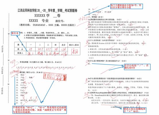 在试卷评阅前召开阅卷工作会议,组织教师认真学习评卷要求,要求教师严格按照阅卷规范、参考答案和评分标准进行评阅,做到签名规范、评分合理、合分准确、复核到位、责任到人。