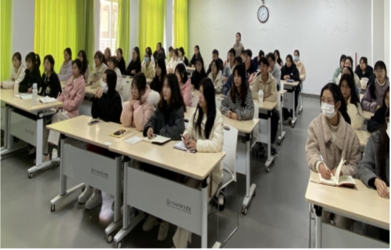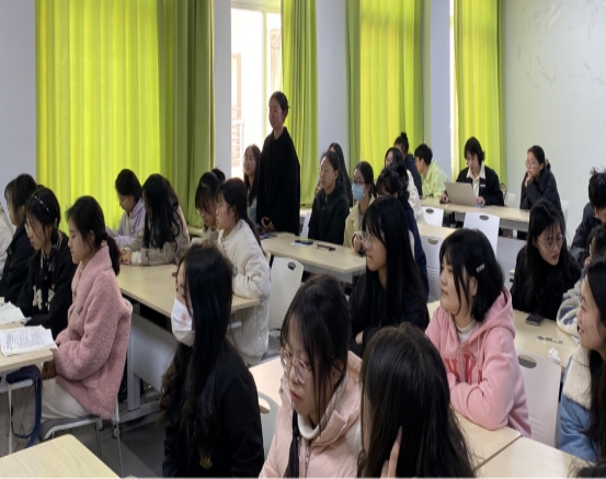 2023年2月21日由政府督导专员彭迪云教授就《为中国式现代化而勤奋学习》为全校师生开展“开学第一课”。财经学院组织全体学生进行线上同步学习,部分学生代表在行知楼417教室以直播的形式观看。