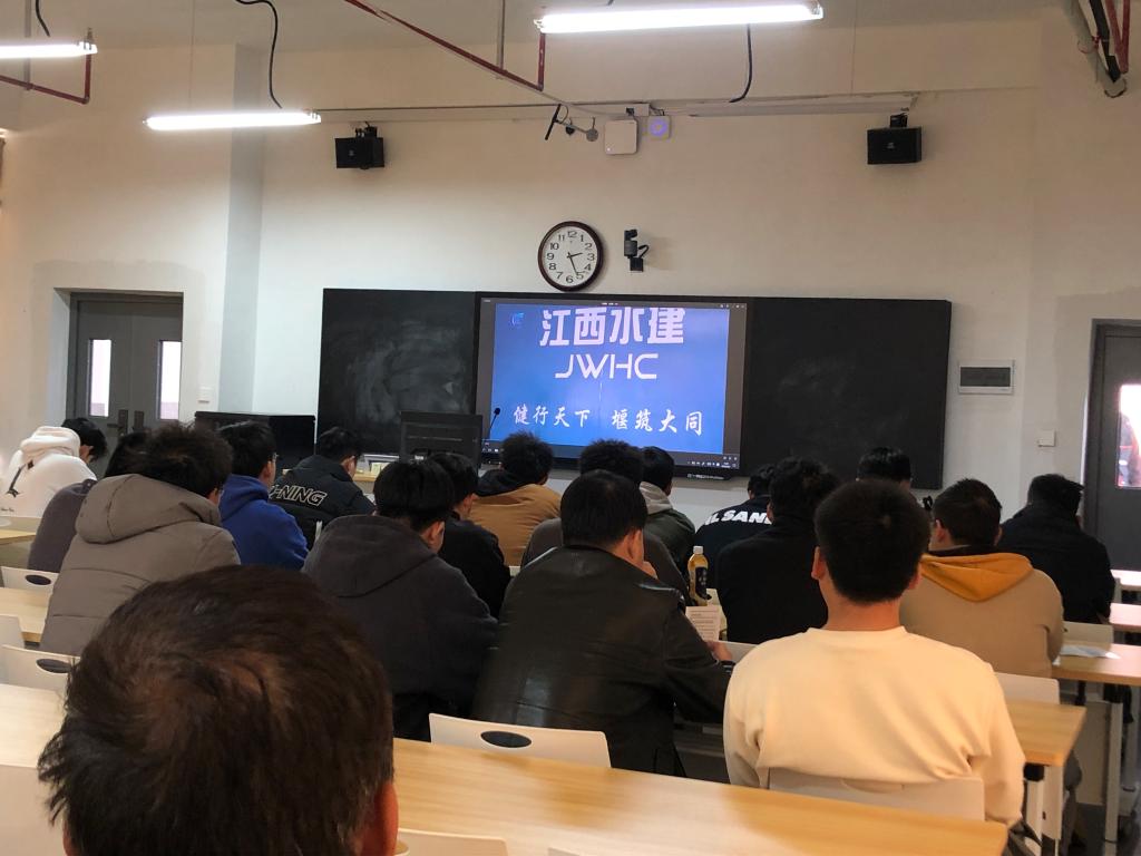 图一:学生们正在认真观看江西省水利水电建设集团宣传视频