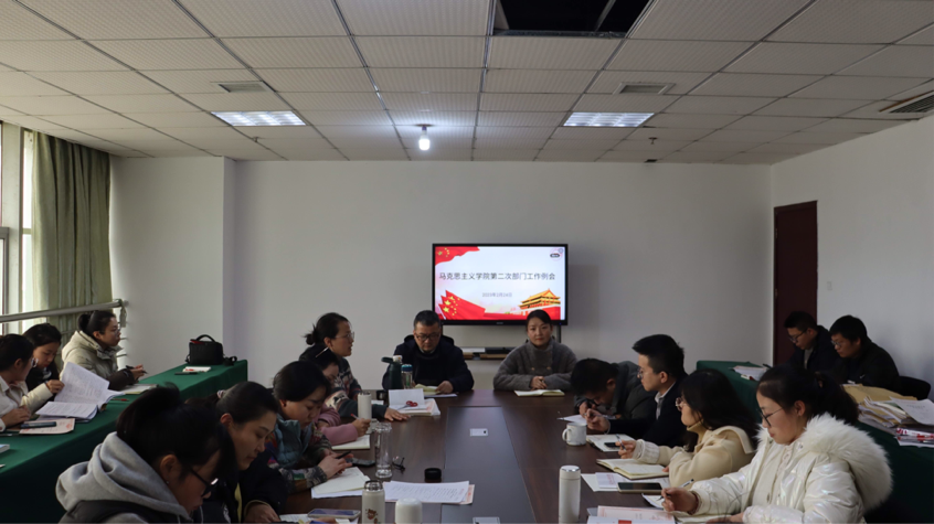 2023年2月23日下午13:50,马克思主义学院在综合楼808会议室召开了召开2022-2023学年第二学期第二次部门工作会议。会议由学院教学运行科科长占铃娜主持,全院教师参加。